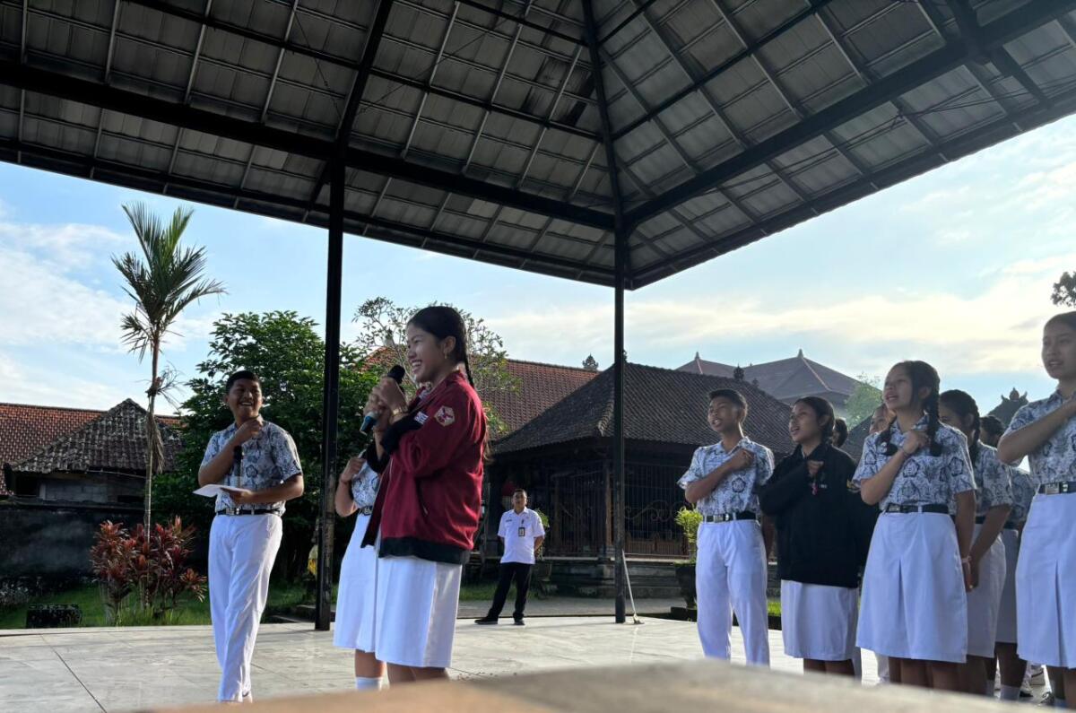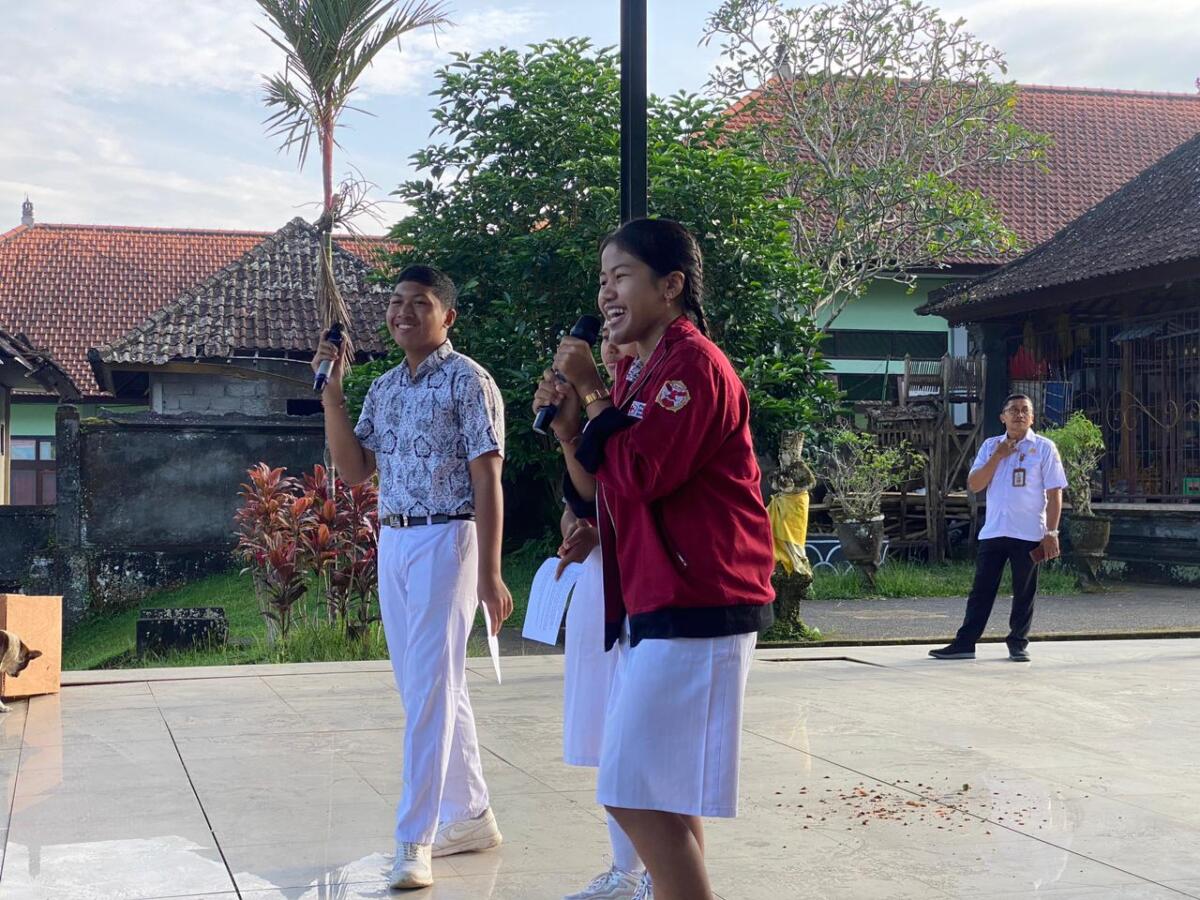 Di bawah kordinator Waka Kesiswaan, Bapak Komang Nuriada,S.Pd., WE! Eling yang merupakan salah satu program OSIS ini berlangsung dengan lancar dan tertib. Sebelum pelaksanaan WE! Eling,diawali dengan program SPIL SAYANG dan Puja Tri Sandya yang didampingi oleh staf guru dan pegawai.
