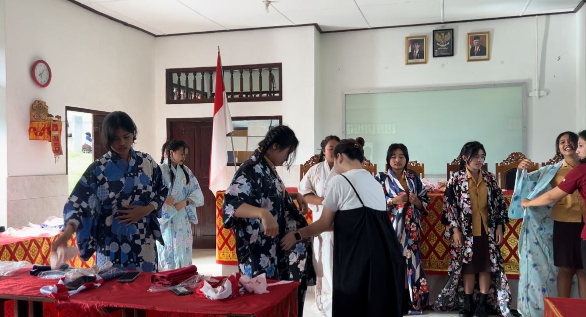 Jumat, 11 Oktober 2024. Siswa SMA Negeri 2 Bangli mengikuti program pembelajaran bahasa Jepang dari Nihon-go Partner. Nisikawa Miki adalah tamu jepang yang bertugas melaksanakan proses pembelajaran di SMA Negeri 2 Bangli. Program pembelajaran Bahasa jepang yang diselenggarakan oleh JF ( Japanese foundation ) yang diperkenalkan langsung oleh Nisikawa Miki adalah pengenalan kebudayaan jepang. Salah satu kebudayaan itu adalah pakaian tradisional jepang yaitu YUKATA.