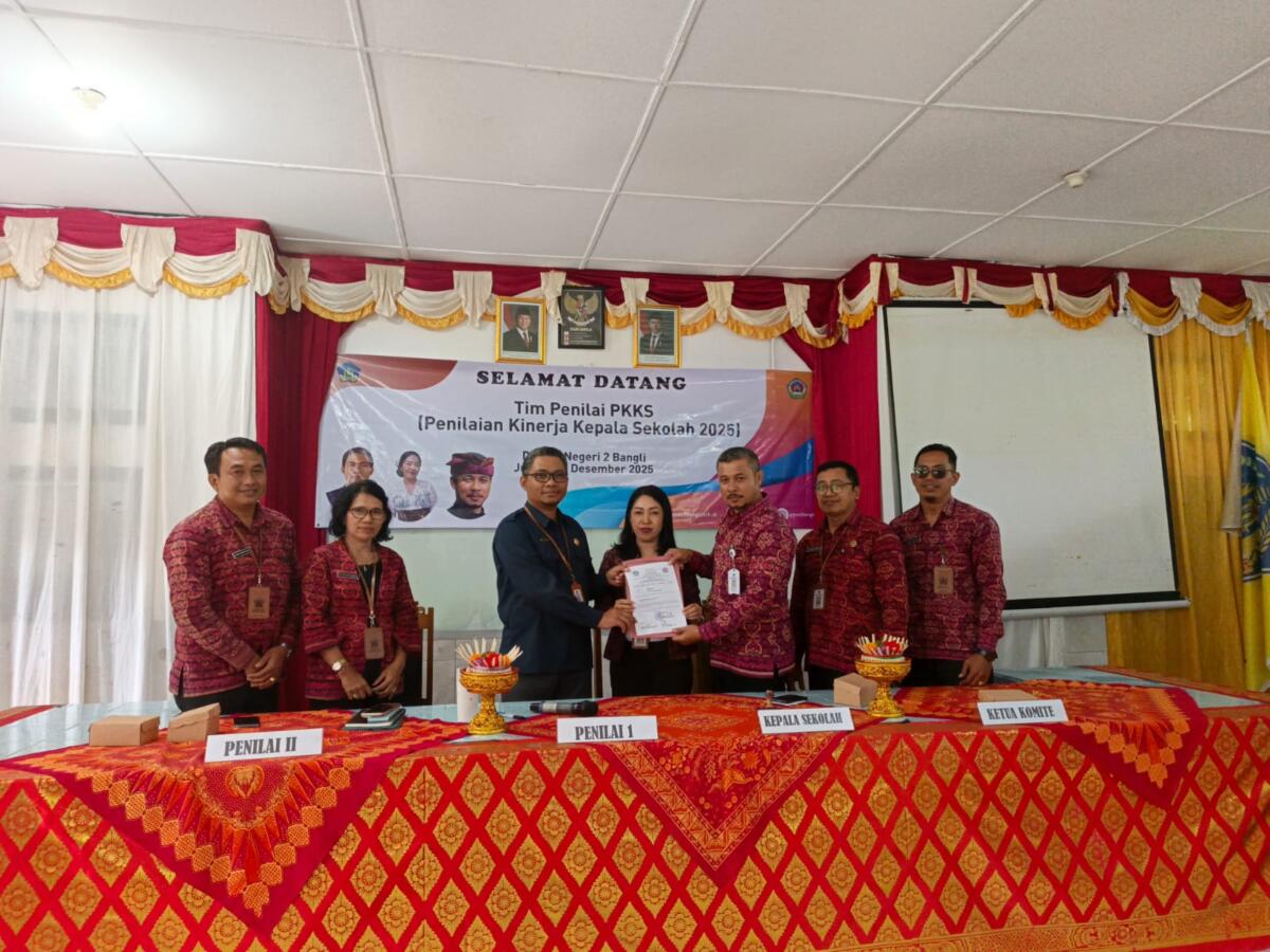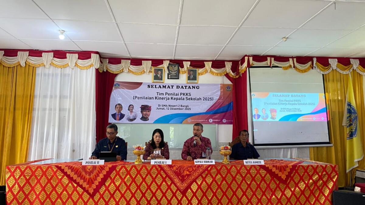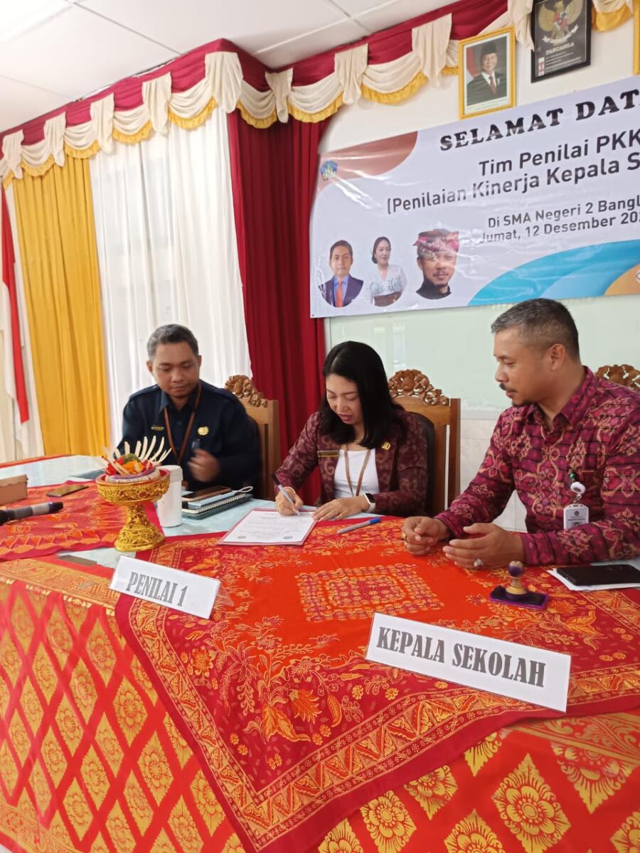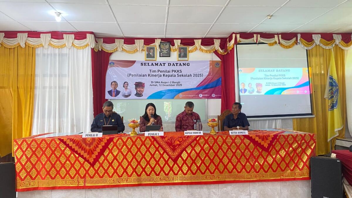 Jumat, 12 Desember 2025, SMA Negeri 2 Bangli melaksanakan kegiatan Penilaian Kinerja Kepala Sekolah (PKKS) sebagai bagian dari upaya berkelanjutan untuk meningkatkan mutu dan tata kelola satuan pendidikan. Kegiatan penting ini dihadiri oleh tim penilai dari Dinas Pendidikan Kepemudaan dan Olahraga Provinsi Bali, yaitu Ni Wayan Adnyani, S.Pd., M.Pd. dan I Kadek Arta, S.Pd. Kedua tim penilai ini diterima secara langsung oleh Kepala SMA Negeri 2 Bangli,I Gede Kariawan,S.Pd.,M.Pd. yang didampingi oleh jajaran manajemen sekolah, Ketua Komite, beberapa alumni, serta seluruh pendidik dan tenaga kependidikan di lingkungan SMA Negeri 2 Bangli.