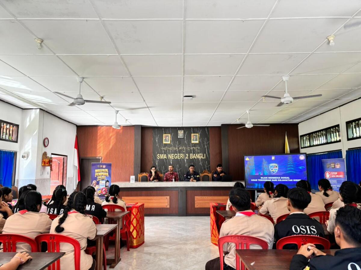Jumat, 10 April 2026. SMA Negeri 2 Bangli menerima sosialisasi dari Polda Bali dengan topik “Bijak Bermedia Sosial agar Terhindar dari Kejahatan Cyber”. Kegiatan ini berlangsung di Laboratorium SMA Negeri 2 Bangli mulai pukul 09.00- selesai.