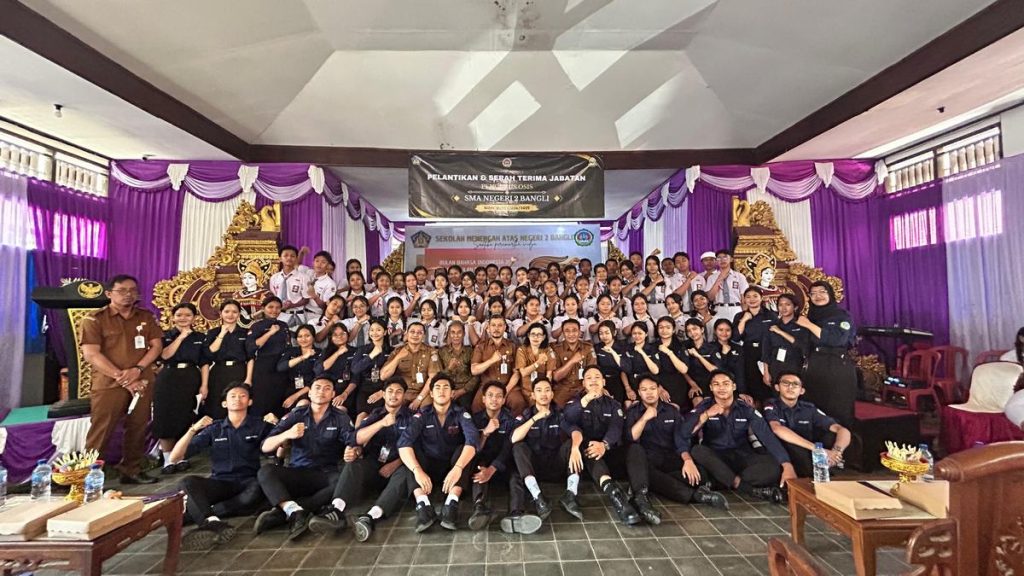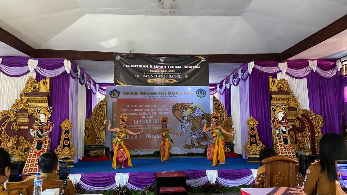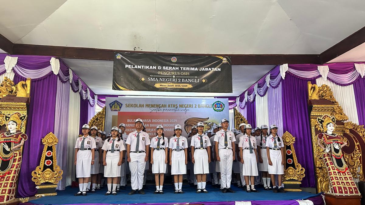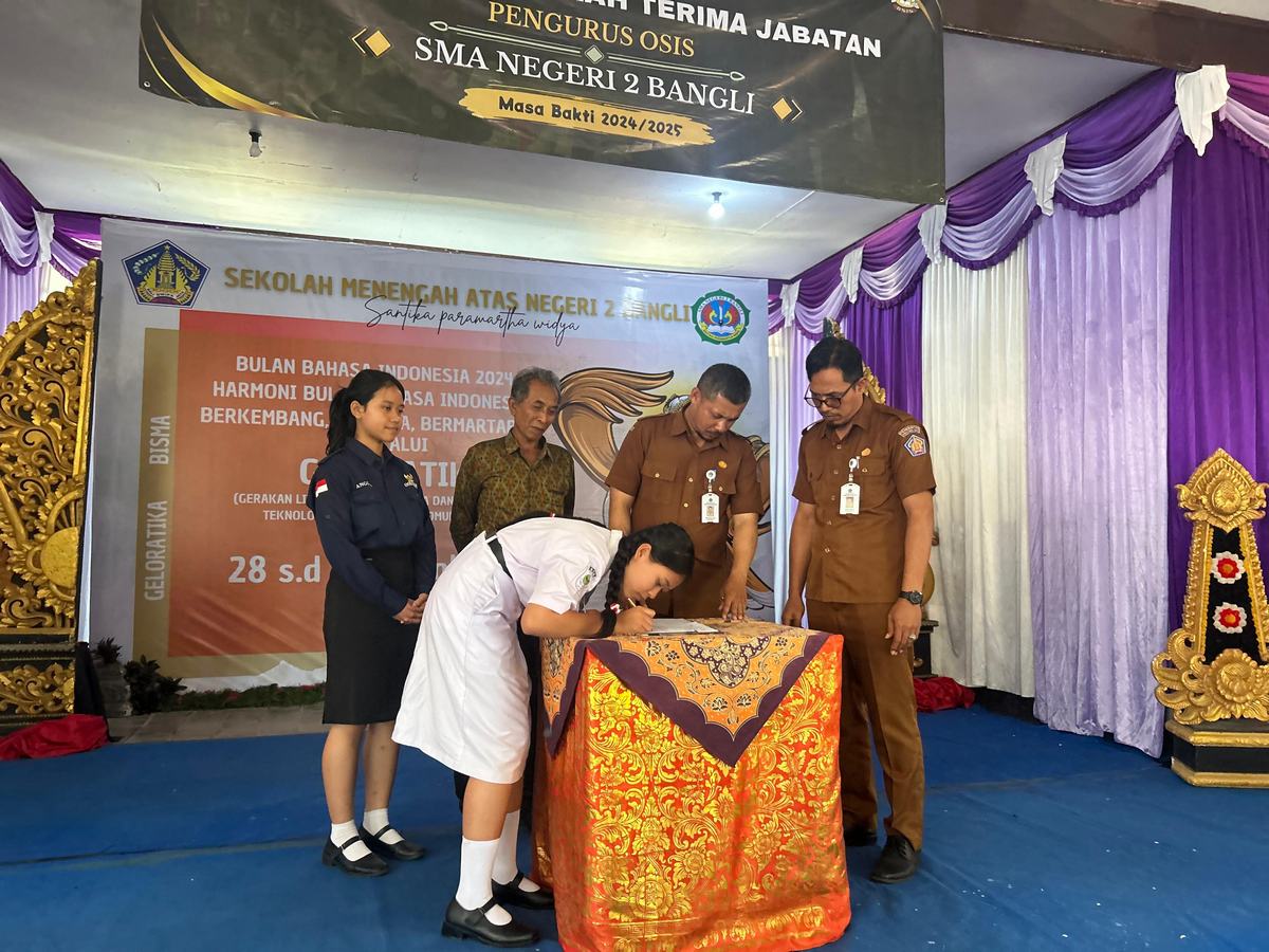 Senin,28 Oktober 2024 SMA Negeri 2 Bangli melaksanakan pembukaan Bulan Bahasa Indonesia sekaligus pelantikan pengurus OSIS masa bhakti 2024/2025. Dilaksanakan di ruang Aula MGMP SMA Negeri 2 Bangli. Kegiatan ini berlangsung dari pukul 09.00WITA – selesai. Kegiatan Bulan Bahasa Indonesia tahun 2024 yang berlangsung selama 4 hari, dari Senin 28 Oktober 2024 – 31 Oktober  2024. Bulan Bahasa Tahun ini mengangkat tema “Harmoni Bulan Bahasa Indonesia, Berkembang, Berjaya, Bermartabat melalui  kegiatan bernama GELORATIKA.