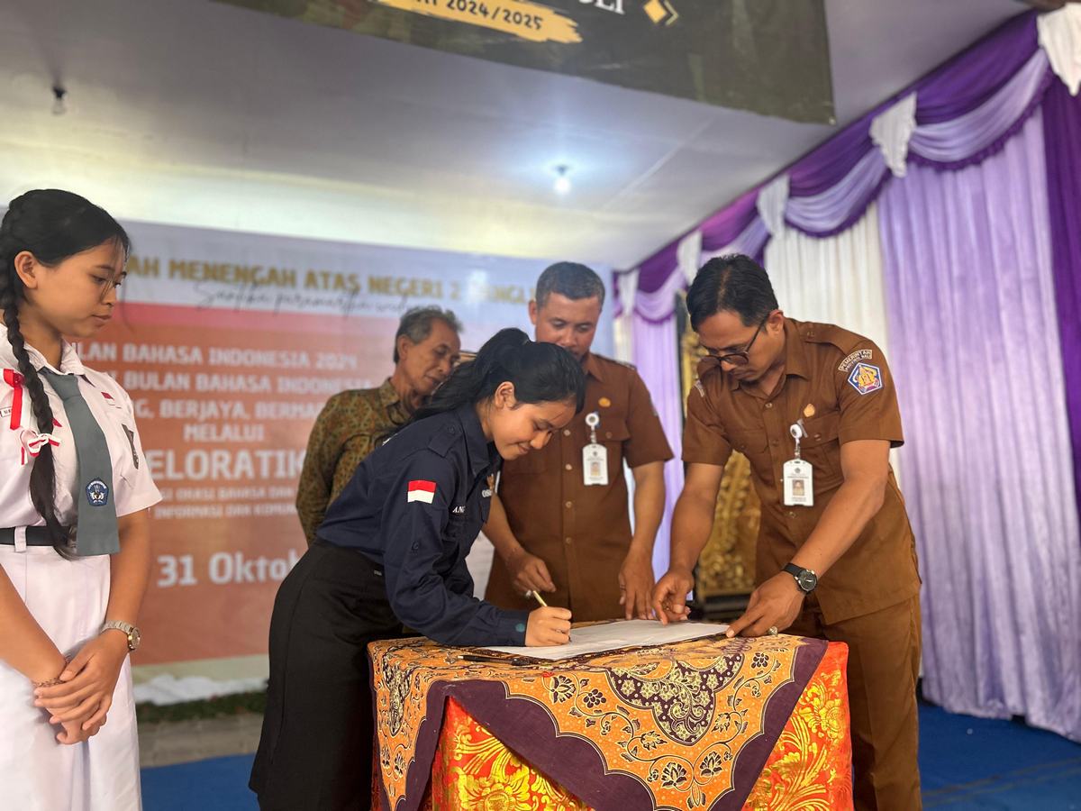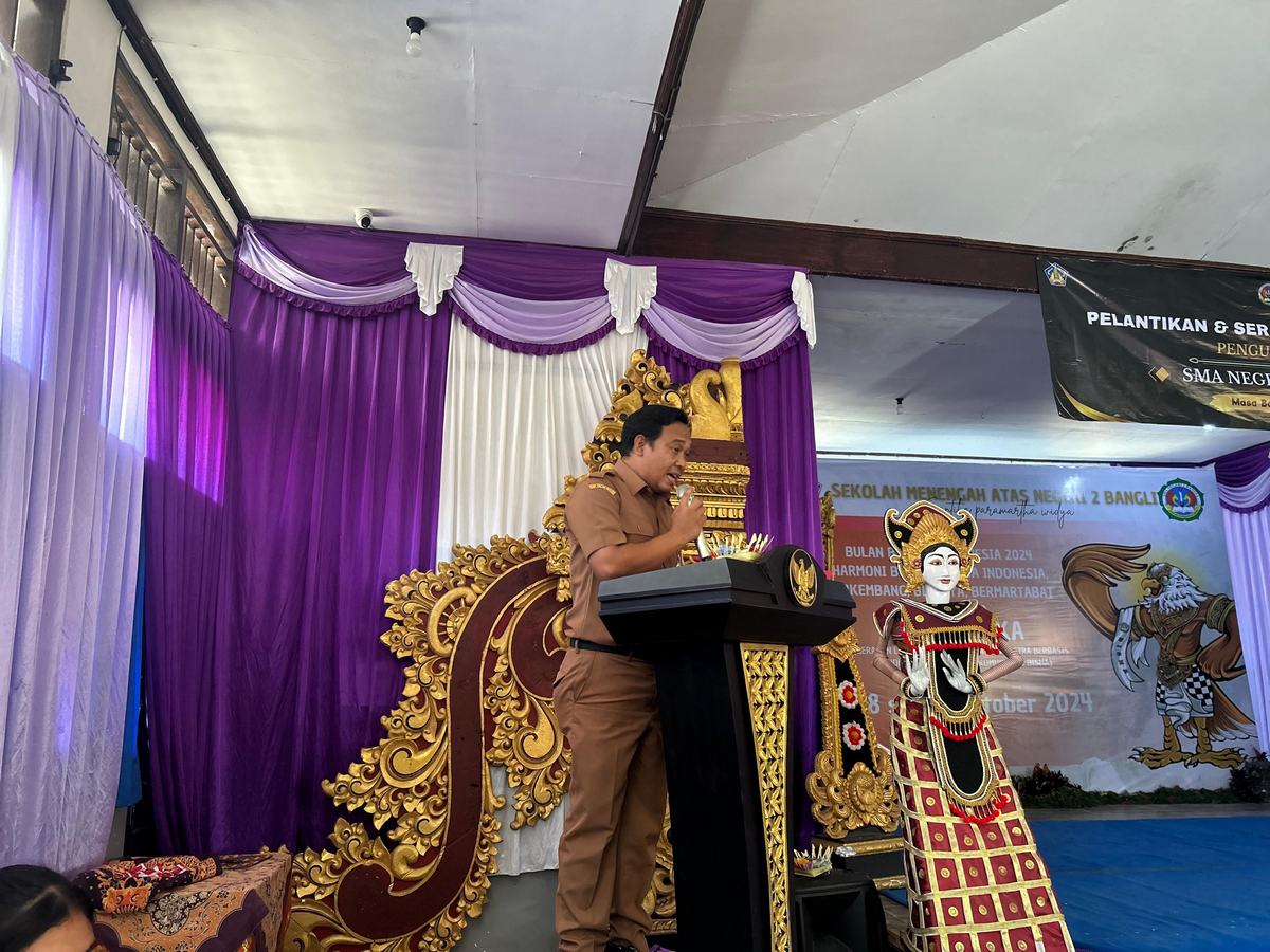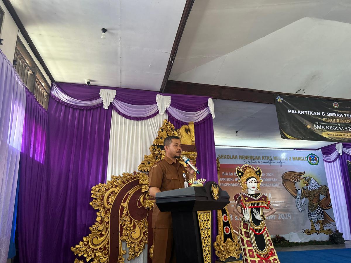 Senin,28 Oktober 2024 SMA Negeri 2 Bangli melaksanakan pembukaan Bulan Bahasa Indonesia sekaligus pelantikan pengurus OSIS masa bhakti 2024/2025. Dilaksanakan di ruang Aula MGMP SMA Negeri 2 Bangli. Kegiatan ini berlangsung dari pukul 09.00WITA – selesai. Kegiatan Bulan Bahasa Indonesia tahun 2024 yang berlangsung selama 4 hari, dari Senin 28 Oktober 2024 – 31 Oktober  2024. Bulan Bahasa Tahun ini mengangkat tema “Harmoni Bulan Bahasa Indonesia, Berkembang, Berjaya, Bermartabat melalui  kegiatan bernama GELORATIKA.