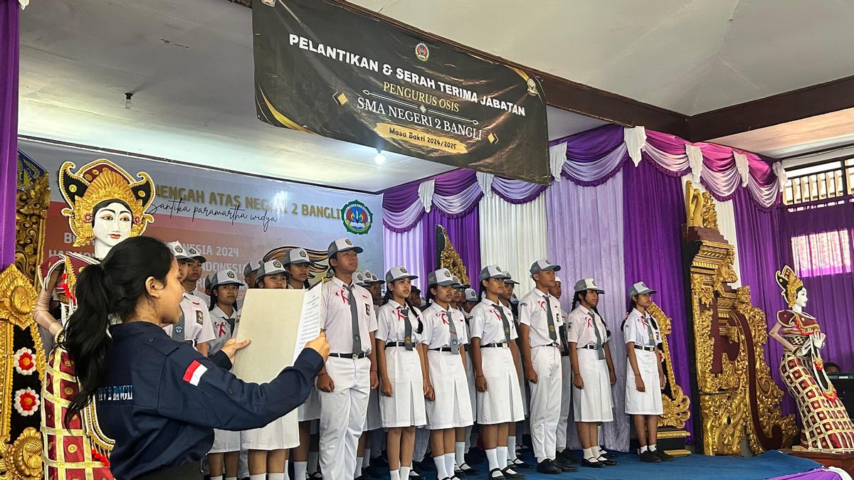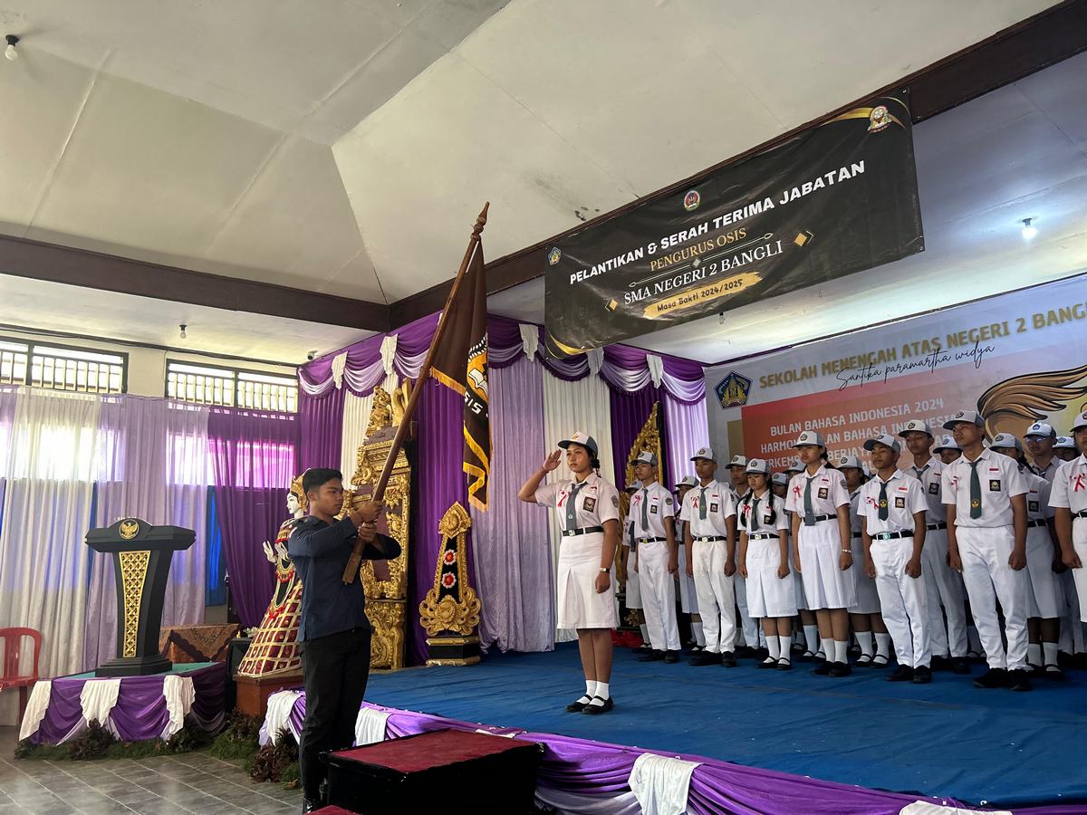 Pengurus  OSIS masa bhakti 2024/2025 berjumlah 50 orang siswa yang dilantik secara langsung oleh Bapak Kepala SMA Negeri 2 Bangli, I Gede Kariawan S.Pd., M.Pd., yang juga didampingi oleh ketua komite, dan jajaran Wakasek SMA Negeri 2 Bangli. Acara selanjutnya yaitu penyerahan panji OSIS oleh Ni Made Diah Putri Anggita, selaku Ketua OSIS masa bakti 2023/2024. Dilanjutkan dengan pembacaan  janji OSIS oleh Ni Made Diah Putri Anggita selaku ketua OSIS masa bakti 2023/2024, yang ditirukan oleh seluruh anggota OSIS baru.
