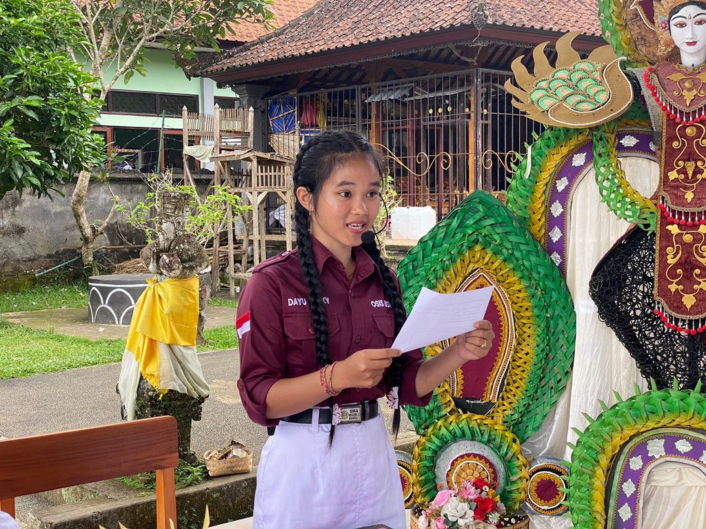 Pelaksanaan upacara yang dirangkaikan dengan pembukaan BBI (Bulan Bahasa Indonesia) diawali dengan laporan ketua panitia, Dra. Ni Ketut Gunasih. Kemudian dilanjutkan kembali dengan sambutan pembina upacara, Bapak I Wayan Sudiana,S.Pd.,M.Pd. sekaligus membuka pelaksanaan BBI tahun 2025 secara resmi yang ditandai dengan pemukulan gong. Dalam sambutannya, beliau menyampaikan bahwa Bulan Bahasa merupakan wadah penting untuk menumbuhkan semangat literasi dan kreativitas di era digital. Kegiatan ini digelar selama 2 hari yang dirayakan  dengan berbagai lomba di bidang bahasa dan sastra Indonesia dalam konsep yang dibalut dengan  kata GELORATIKA BISMA II  ( Gerakan Literasi Orasi Teknologi Informasi Komunikasi).