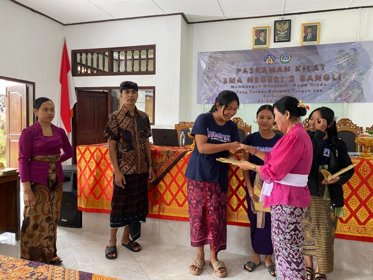 SMA Negeri 2 Bangli kembali menunjukkan komitmennya dalam pembentukan karakter siswa melalui kegiatan Pesraman Kilat dan Yoga yang diselenggarakan selama dua hari, pada Senin dan Selasa, 23–24 Juni 2025. Yang diwakili oleh kelas XA dan XB, bertempat di Laboratorium IPA SMA Negeri 2 Bangli. Kegiatan ini mengusung tema “Membangun Generasi Muda Hindu Cerdas, Religius, Tangguh dan Berkarakter.”