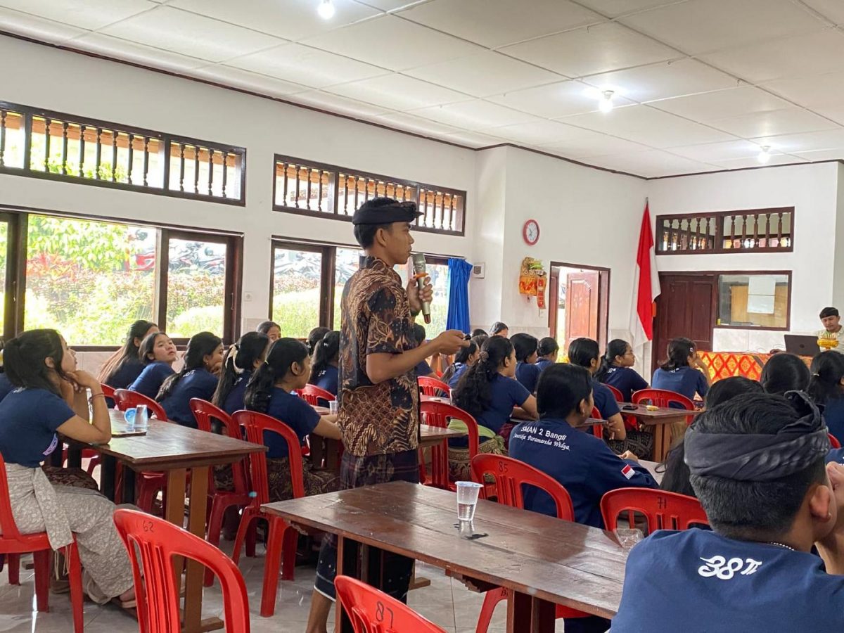 Setelah pembukaan, dilanjutkan dengan pemaparan materi pesramaan yang disampaikan oleh Bapak Dewa Made Weda Mudita, S.Pd.,M.Pd. Adapun materi yang disampaikan mengenai Catur Asrama, busana adat, kramaning sembah dan makna fungsi Uparengga. Pesraman kilat ini mendapat antusiasme tinggi dari para siswa. Dengan semangat belajar yang tinggi dan penuh kebersamaan, kegiatan ini diharapkan dapat memperkuat śraddhā dan bhakti siswa terhadap ajaran agama Hindu serta membentuk karakter siswa yang unggul dalam bidang akademik dan spiritual.