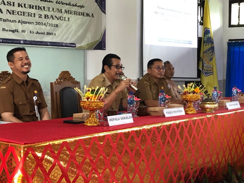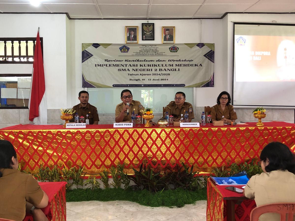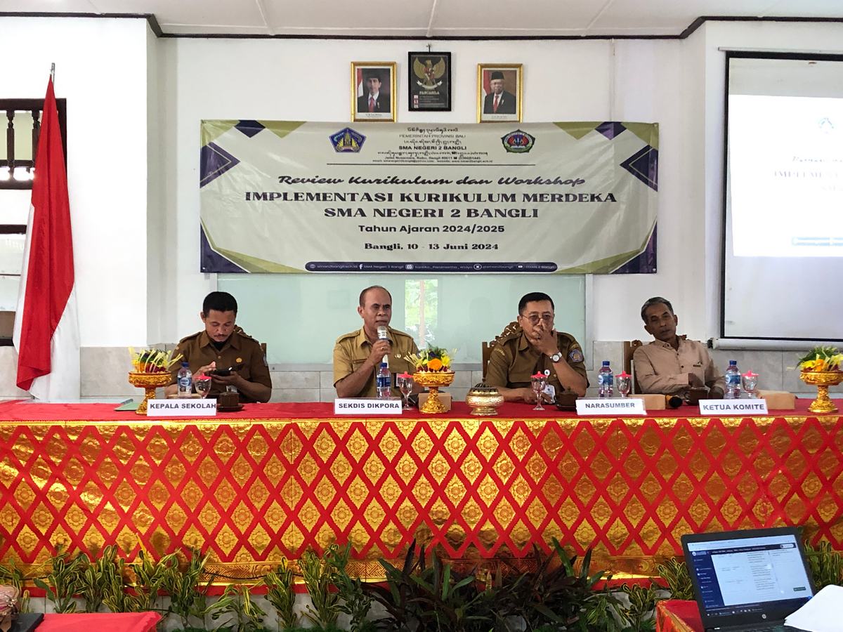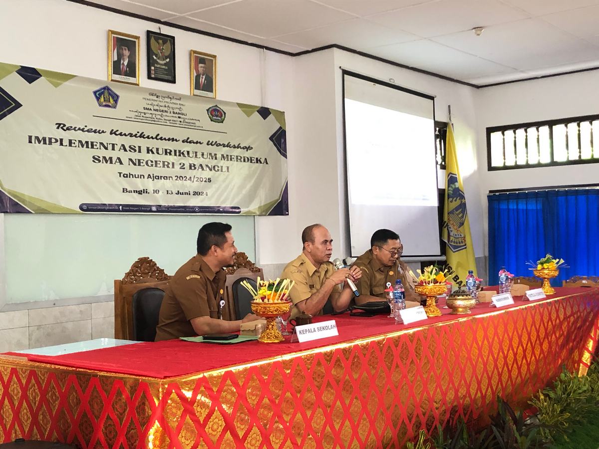 Suatu kebanggaan bagi warga SMA Negeri 2 Bangli, Kadis Dikpora Prov. Bali, Bapak Dr. KN. Boy Jayawibawa berkesempatan hadir dalam kegiatan ini sekaligus membuka secara resmi Review Kurikulum dan Workshop IKM di SMA Negeri 2 Bangli. Kegiatan ini juga dihadiri oleh Sekdis Dikpora Prov. Bali, Bapak I Made Sutarjana, S.Sos, M.M., Kabid Pembinaan SMA, Bapak Ngurah BG Pasek Wirakusuma, ST, M.M., Bapak I Gede Kariawan, S.Pd, M.Pd selaku Kepala SMA Negeri 2 Bangli, Wakasek SMA Negeri 2 Bangli, Ketua Komite SMA Negeri 2 Bangli, serta Dewan Guru dan Staf Pegawai SMA Negeri 2 Bangli.