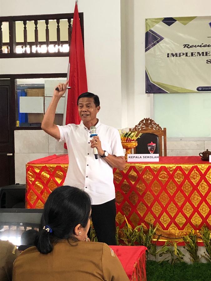 I Wayan Sudiana, S.Pd, M.Pd selaku Waka Kurikulum sekaligus narasumber pada kegiatan ini menyatakan bahwa “Mereview kurikulum dan workshop implementasi kurikulum merdeka, yaitu mereview apa yang telah dilaksanakan pada kurikulum sebelumnya atau juga disebut semacam refleksi. Dimana kurikulum itu perlu diperbaiki melalui inovasi-inovasi baru. Apakah itu berupa visi dan misi yang bisa berubah maupun lain sebagainya. workshop isinya membahas tentang berbagai hal yang bisa kita programkan, salah satunya sebagai wadah untuk para peserta didik menggali pemahaman tentang kurikulum merdeka yang mampu diimplementasikan”. Beliau juga menegaskan bahwa mereview kurikulum sangat penting untuk memastikan bahwa kurikulum yang ada tetap relevan dan sesuai kriteria perkembangan pendidikan yang semakin lama semakin berkembang pesat. Perubahan kurikulum merupakan salah satu perubahan yang dapat memperbaiki dan memulihkan pembelajaran, kurikulum juga mempengaruhi metode pembelajaran yang digunakan oleh para guru pada proses pembelajaran di kelas.