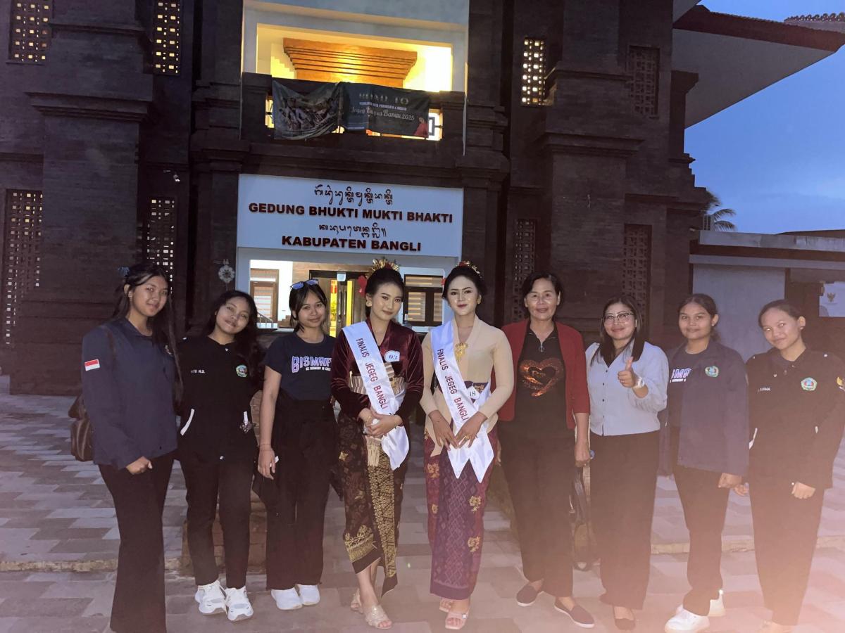 Minggu, 23 Maret 2025 – Jegeg Bagus Bangli kembali menggelar ajang pemilihan Jegeg Bagus yang dirangkaikan dengan semarak perayaan HUT ke-821 Kabupaten Bangli. Ajang pemilihan ini berada di bawah naungan Dinas Pariwisata dan Kebudayaan Kabupaten Bangli. Acara berlangsung dari pukul 07.00 hingga selesai, bertempat di Gedung Bukti Mukti Bhakti Bangli. Acara ini dihadiri oleh perwakilan Dinas Pariwisata, yang diwakili oleh sekretarisnya, serta seluruh peserta ajang pemilihan Jegeg Bagus Bangli.