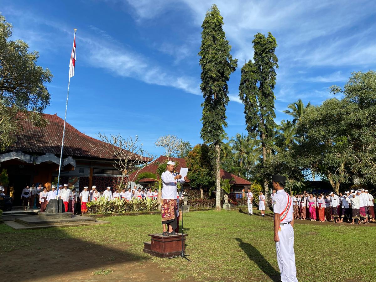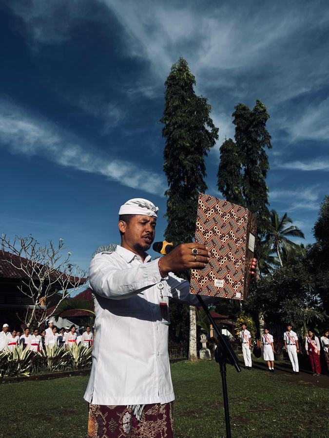 Bertindak sebagai pembina upacara adalah Kepala Sekolah, Bapak I Gede Kariawan, S.Pd., M.Pd. Dalam kesempatan tersebut, beliau membacakan sambutan resmi dari Kepala Badan Pembinaan Ideologi Pancasila (BPIP) RI, Prof. Yudian Wahyudi, dalam rangka memperingati Hari Lahir Pancasila tahun 2025.