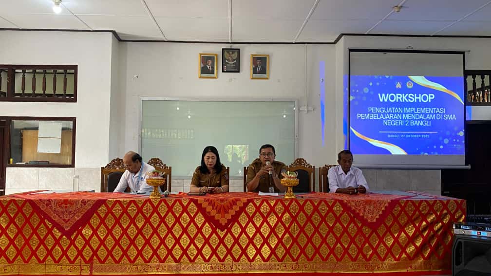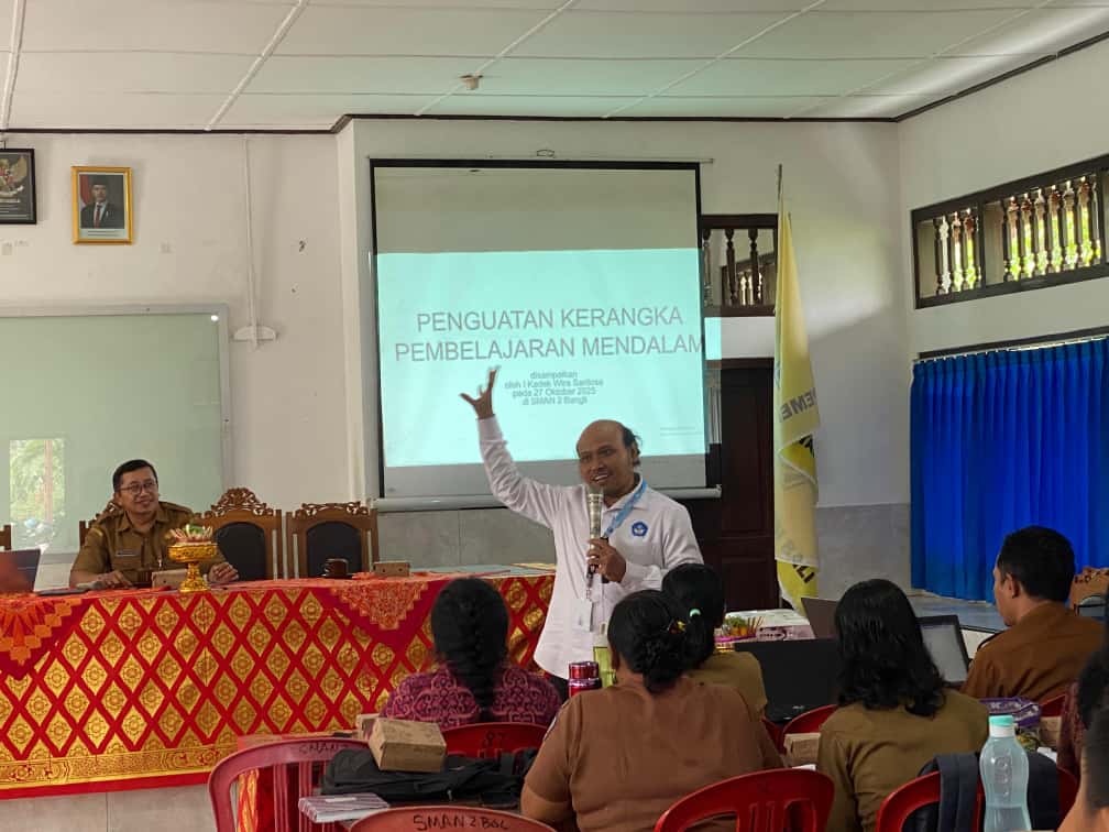 Senin, 27 Oktober 2025. SMA Negeri 2 Bangli menggelar Workshop Penguatan Implementasi Pembelajaran Mendalam yang berlangsung di laboratorium IPA. Kegiatan ini dihadiri oleh berbagai pihak penting, antara lain Pengawas Pendamping Satuan Pendidikan SMA Provinsi Bali,Ketua Komite, Jajaran Wakasek,Bapak /Ibu guru, staf pegawai, dan anggota OSIS SMA Negeri 2 Bangli.