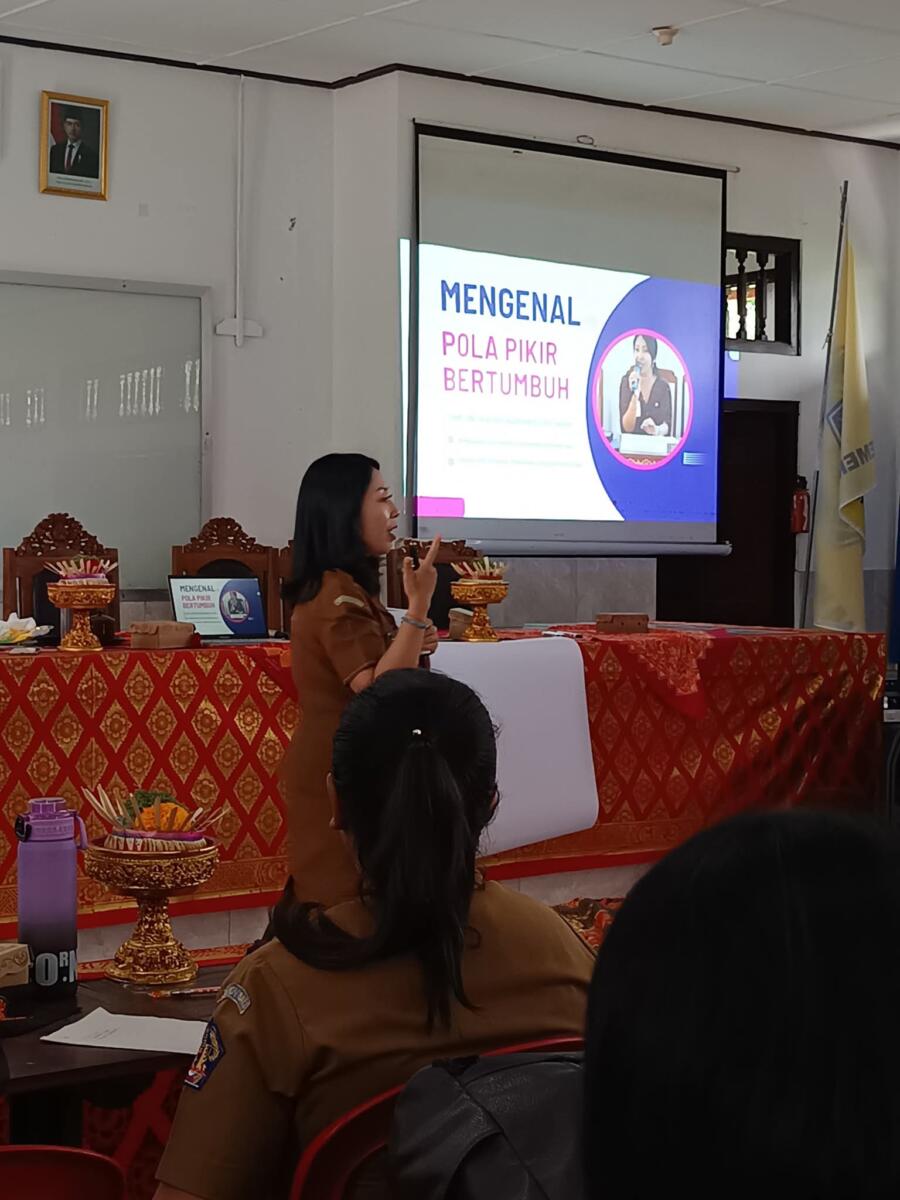 Sementara itu, narasumber kedua yang tidak kalah inspiratif yaitu Ibu Ni Wayan Adnyani, S.Pd., M.Pd.,selaku Pengawas pendamping Satuan Pendidikan SMA Negeri 2 Bangli. Beliau membawakan materi mengenai Pola Pikir Bertumbuh dalam Pembelajaran Mendalam serta Perangkat Ajar Berbasis Pembelajaran Mendalam. Dalam pemaparannya, beliau menekankan bahwa pembelajaran mendalam tidak hanya menekankan hasil akhir, tetapi juga proses berpikir dan eksplorasi peserta didik dalam memahami konsep secara utuh. Melalui dedikasinya yang tinggi, beliau juga memberikan ruang diskusi kepada seluruh peserta workshop dan praktek langsung dalam penyusunan perangkat ajar berbasis Pembelajaran Mendalam.